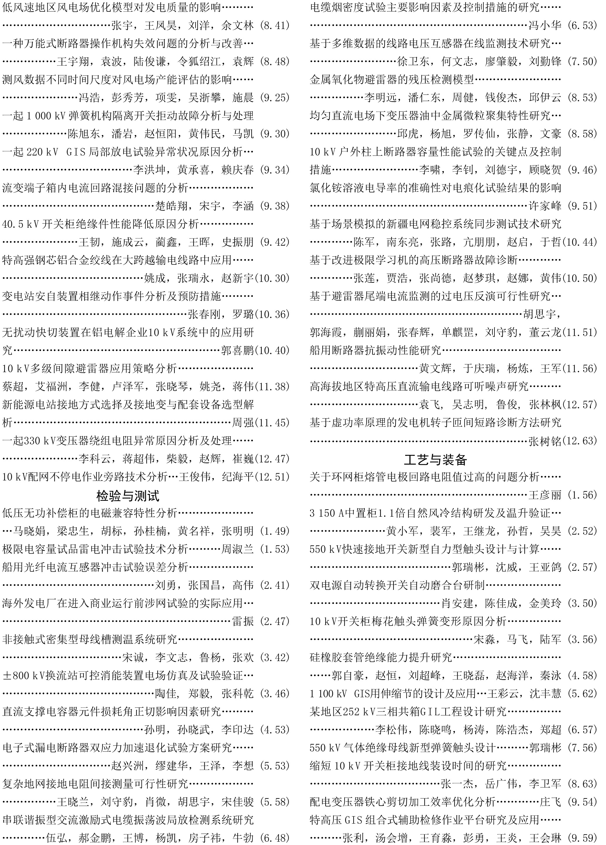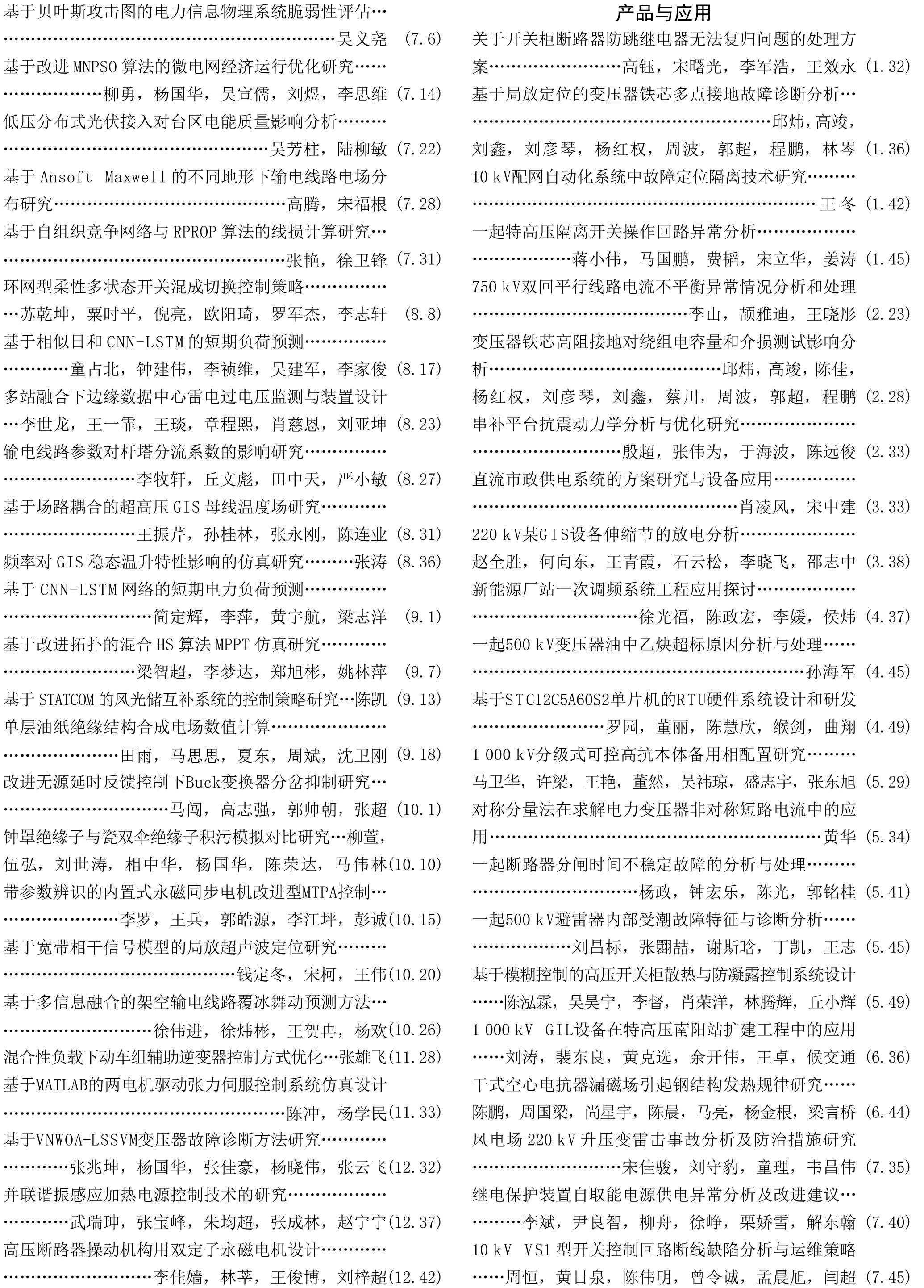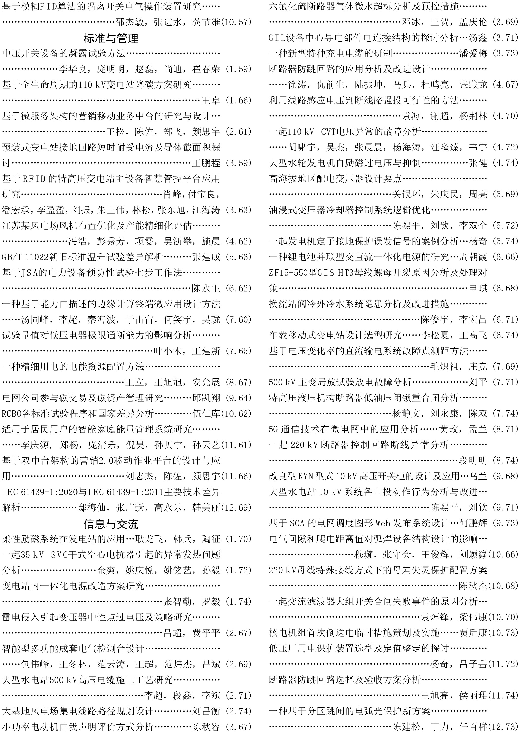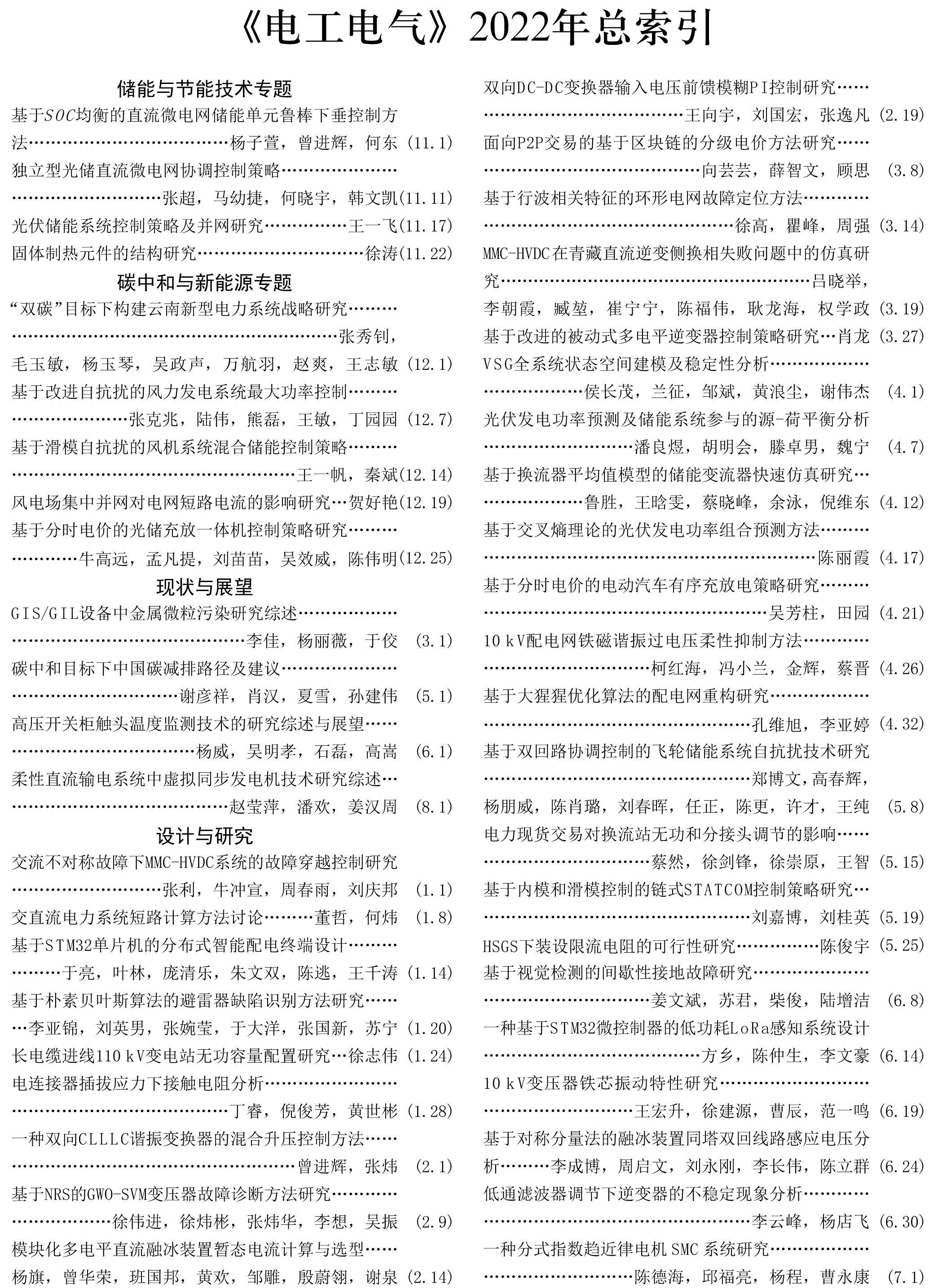 《電工電氣》2022年度總索引具體刊文如下